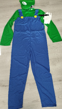 Kostým nový bez vas. Obsah balení - overal, čepice, rukavice, knír